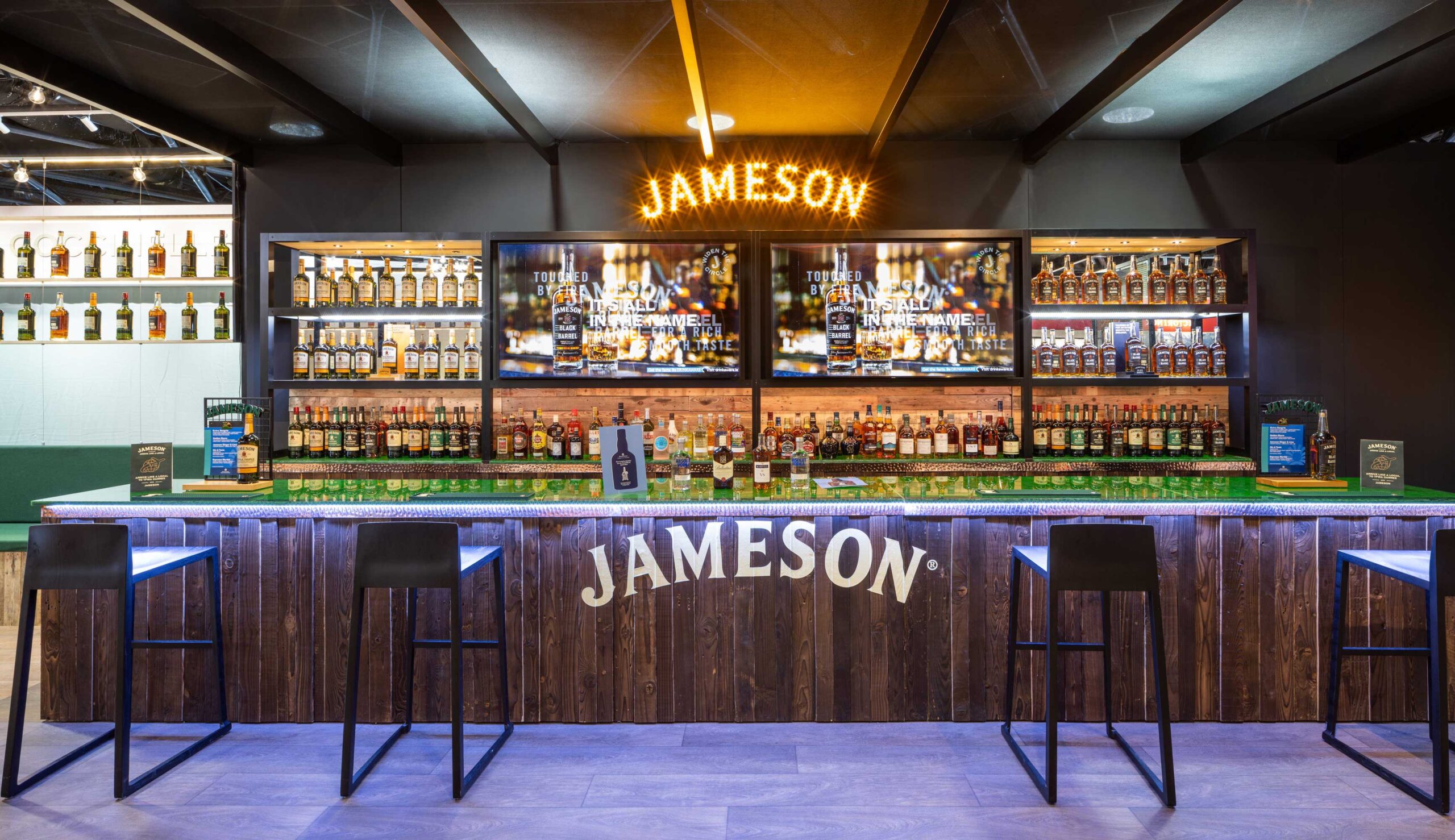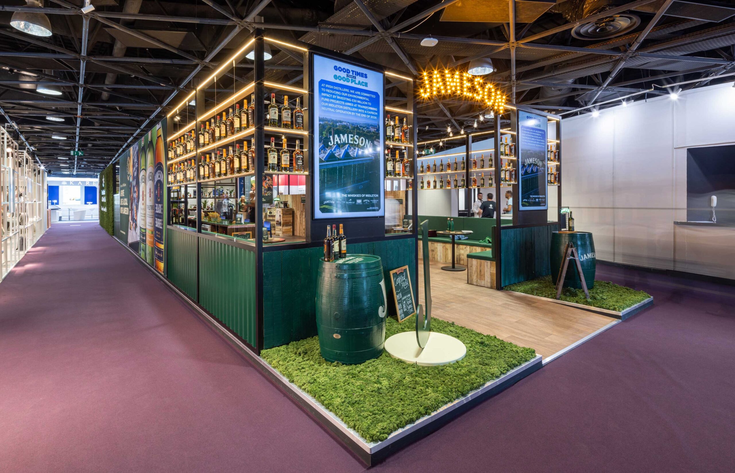 We were able to source and use some amazing new materials to really make this project stand out. The bar top is made from recycled beer bottles, the timber panelling from recycled pallets and live moss exterior cladding to name a few.